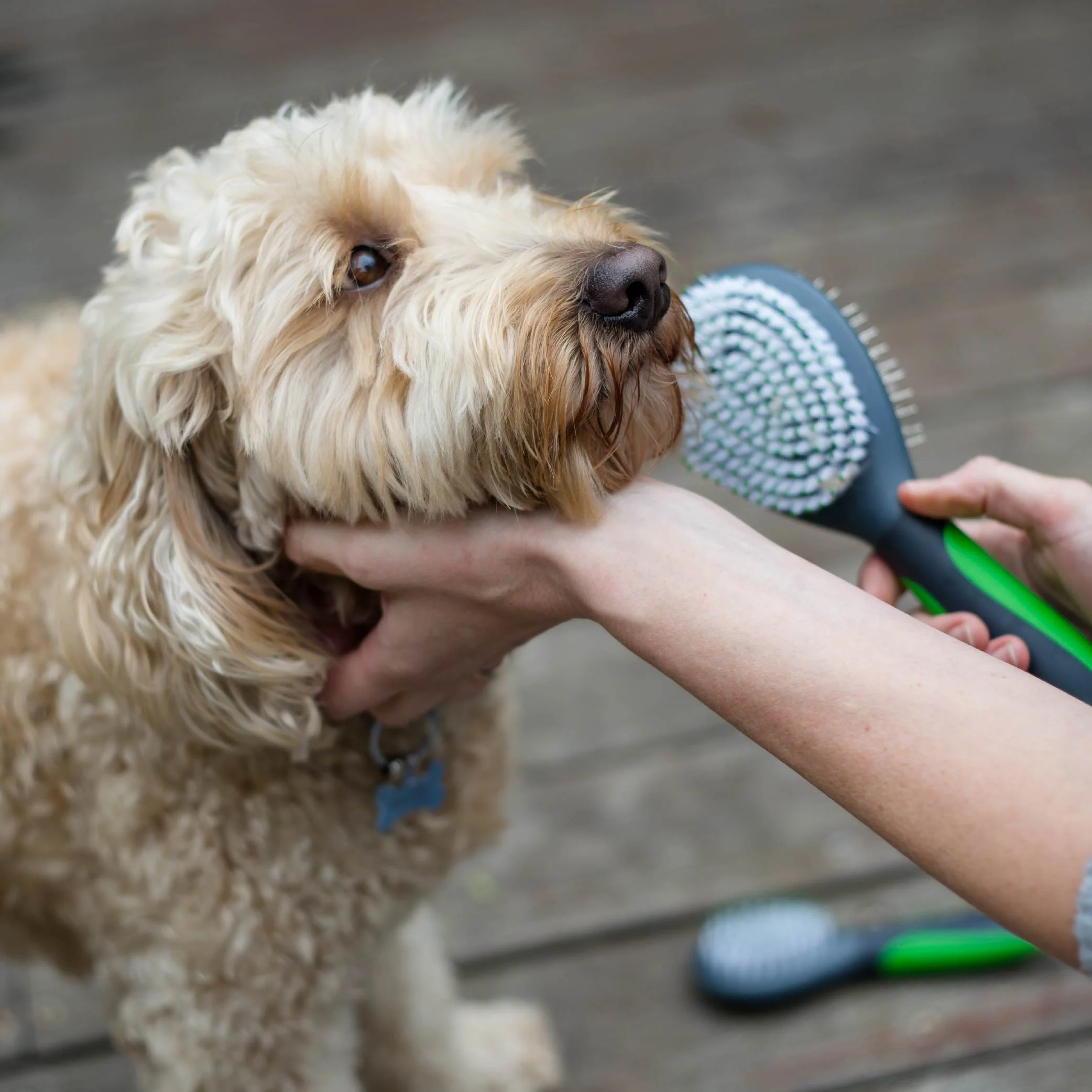 When knot-free, flip the brush over to the soft-bristled side. Finishing on this side will release natural hair oils and add a gentle gloss to the coat.